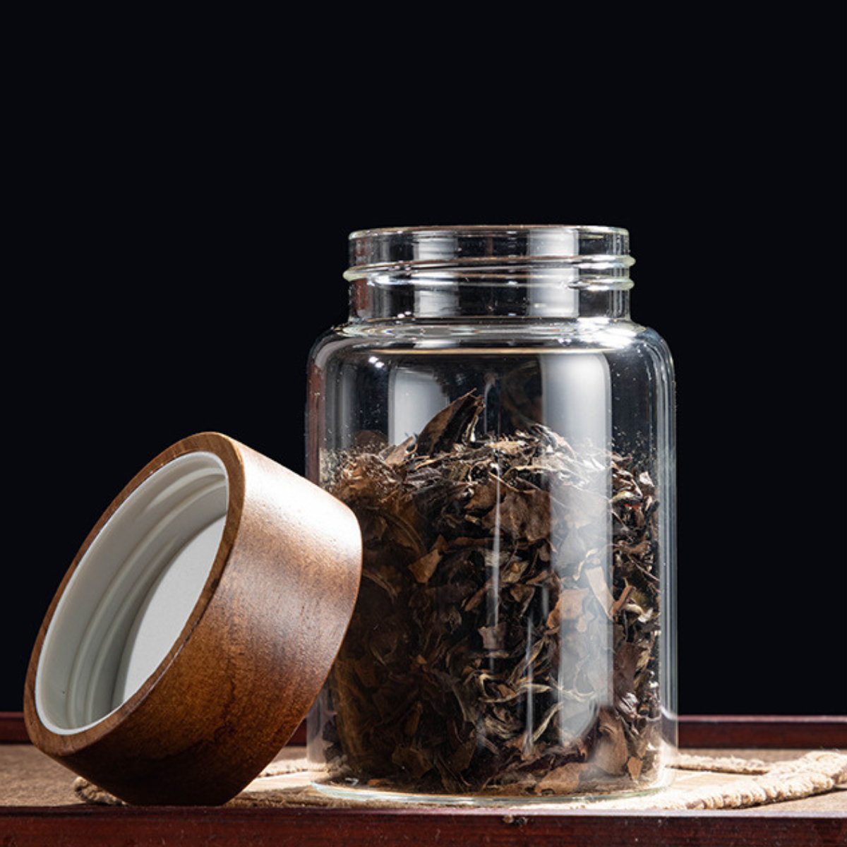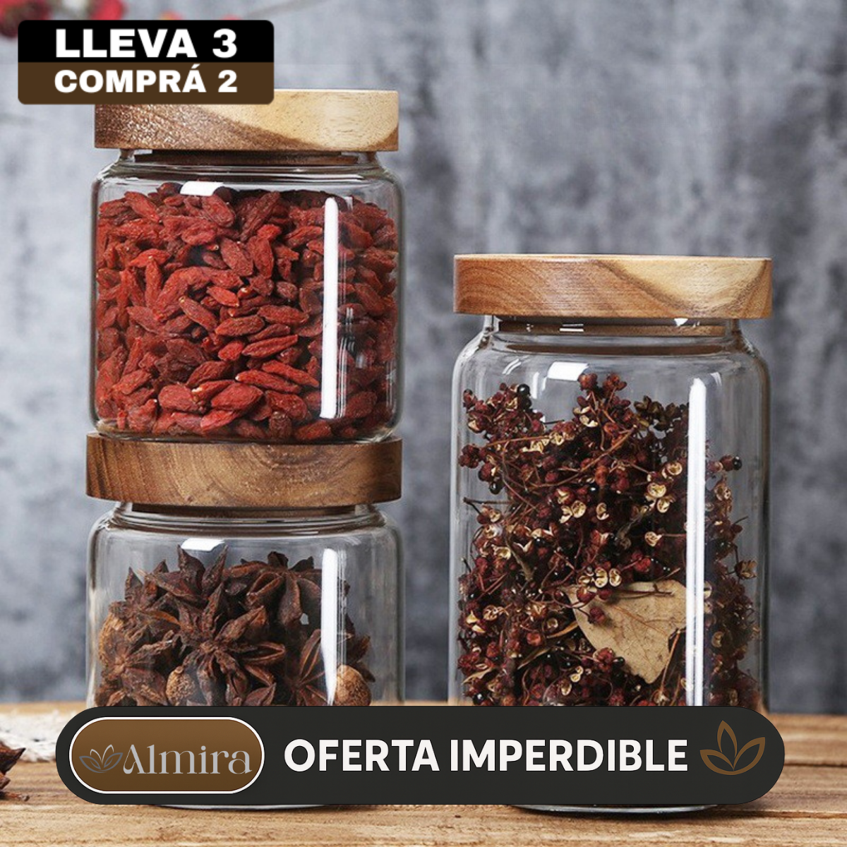 Conjunto de Potes Herméticos Organizadores en Vidrio con Tapa de Roble de Alta Hermeticidad