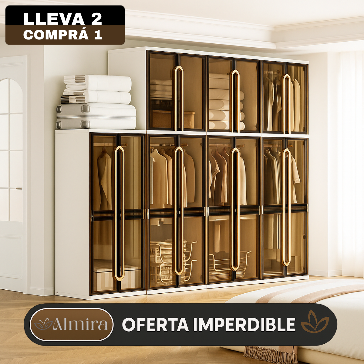[Llevá 2 Pagá 1] Armario Organizador Desmontable con Divisiones Inteligentes y Puertas Ahumadas